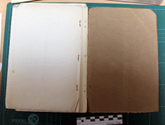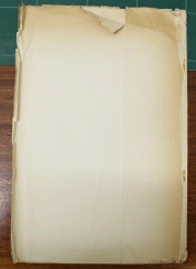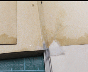I used 12 gsm Japanese tissue and wheatstarch paste to do paper repairs after removing the staples. The fills were completed using a 32 gsm Japanese tissue.
