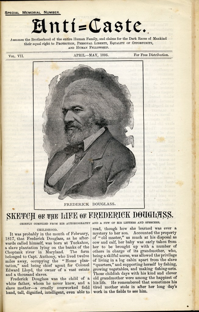 Article, ‘Sketch of the Life of Frederick Douglass’, Anti-Caste, April-May 1895.