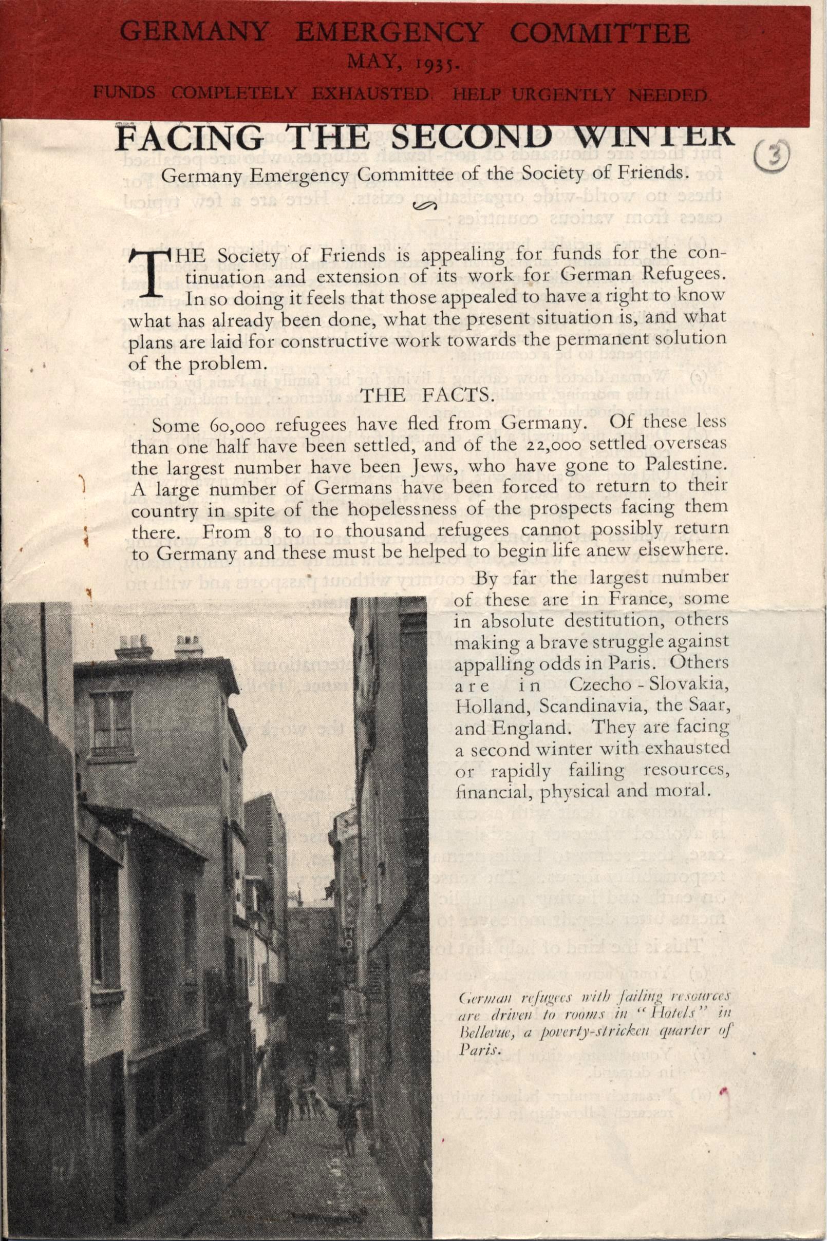 Facing the second winter (London: Germany Emergency Committee, November 1934). With attached appeal dated May 1935