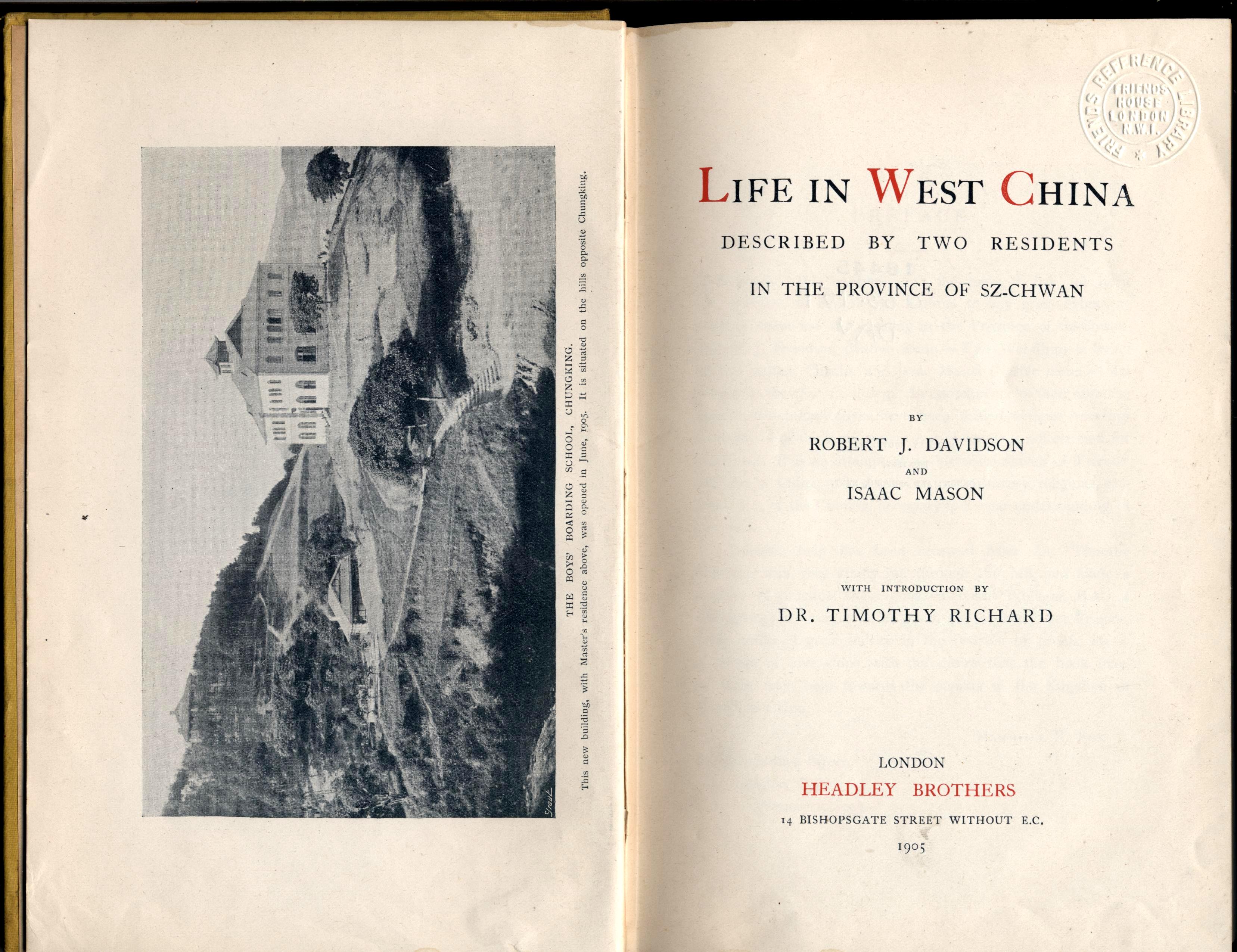 Davidson, Robert J. and Mason, Isaac Life in West China: described by two residents in the province of Sz-chwan. London: Headley Brothers, 1905