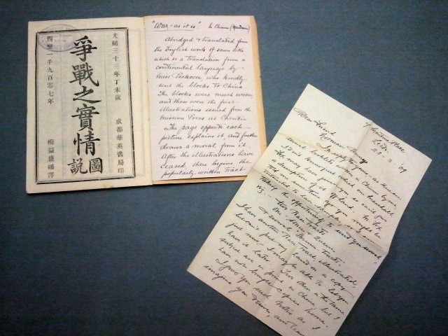 The Library’s copy of War as it is, translated by Isaac Mason, with note by translator and accompanying letter to the Librarian, Norman Penney 23/3/1909