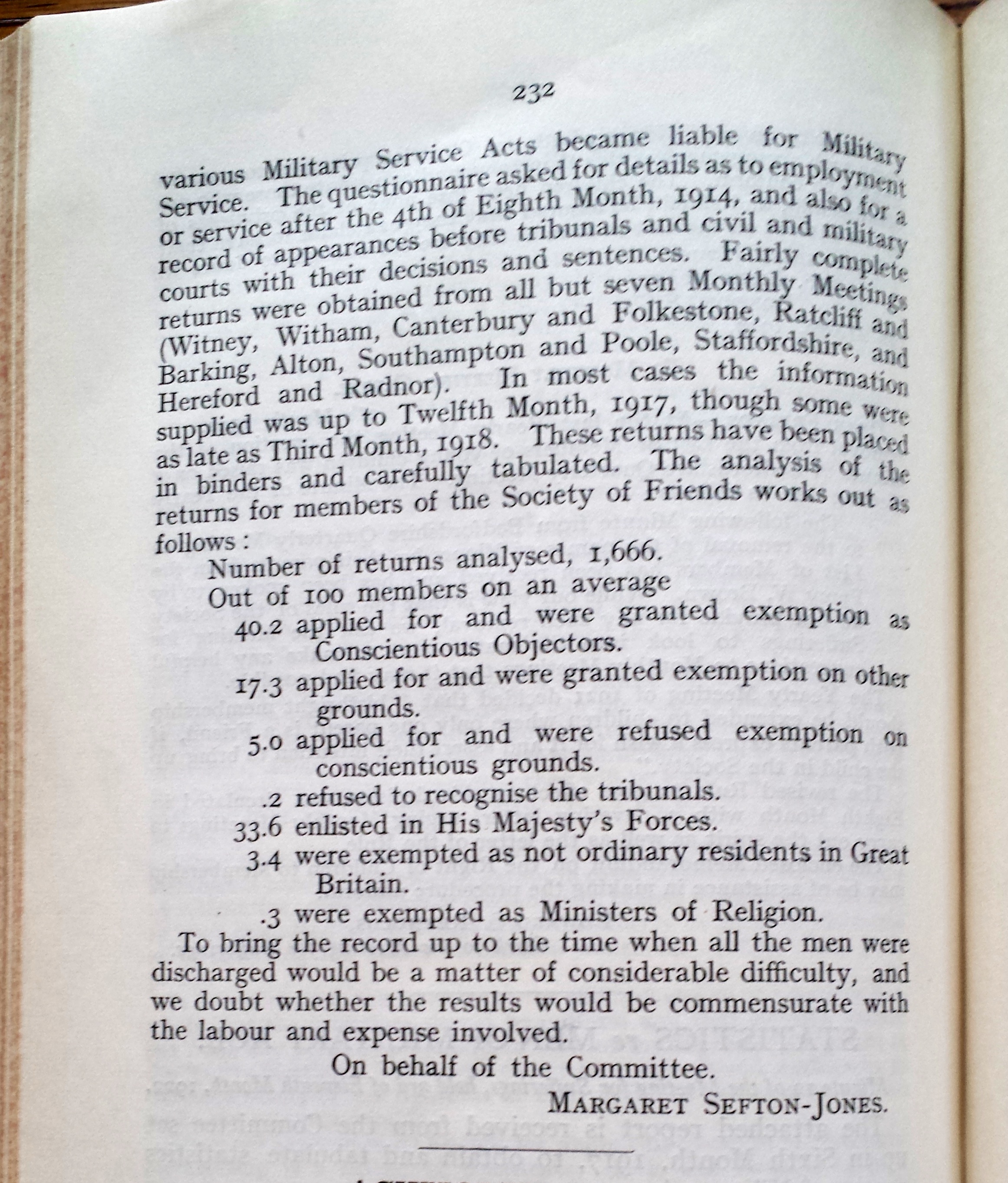Wartime Statistics Committee final report to Meeting for Sufferings, November 1922 (Yearly Meeting Proceedings 1923, p.231-232)