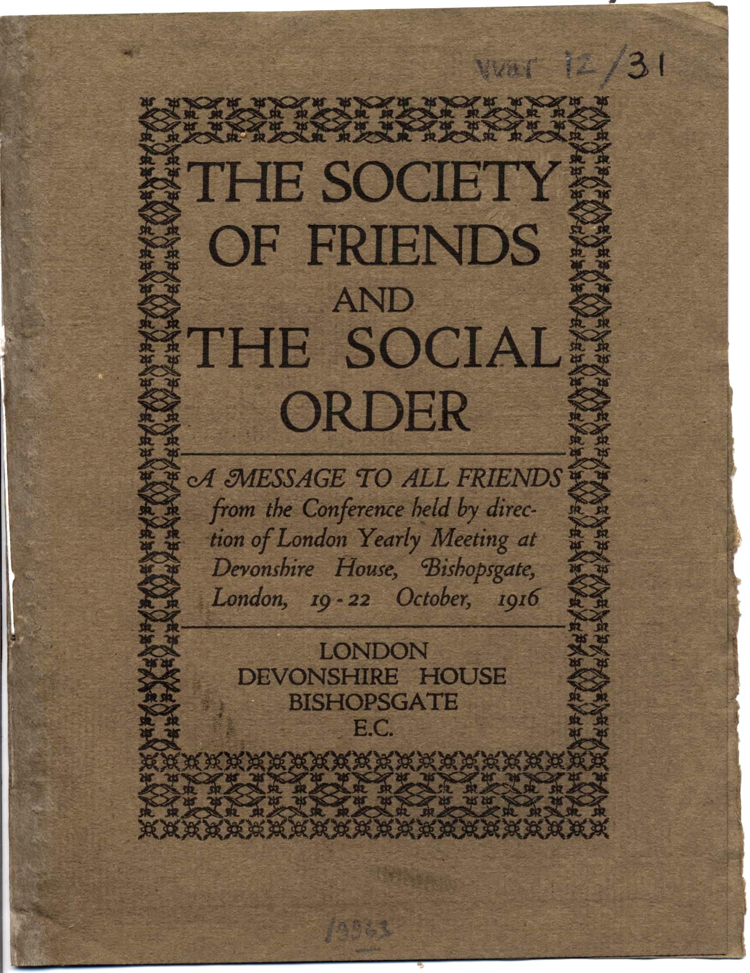 We kicked off our World War I series with a blog post on Friends Peace Committee (predecessor of our present day Quaker Peace & Social Witness), actively promoting peace and international conciliation since the late 1880s. That was followed by Experiences of conscientious objectors, highlighting some of the unpublished resources held by the Library – prison diaries, letters and The Winchester Whisperer, a clandestine C.O. prison newspaper.