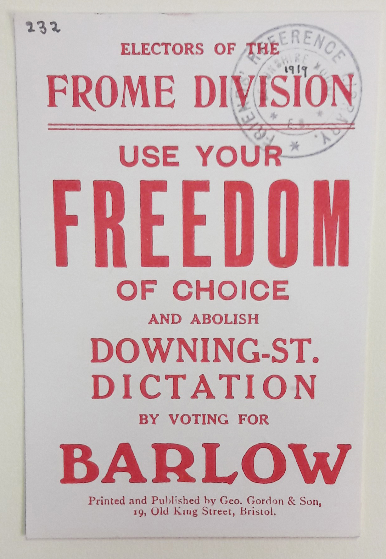 1918 election cards for John E. Barlow (Library reference: Box L 228/2)