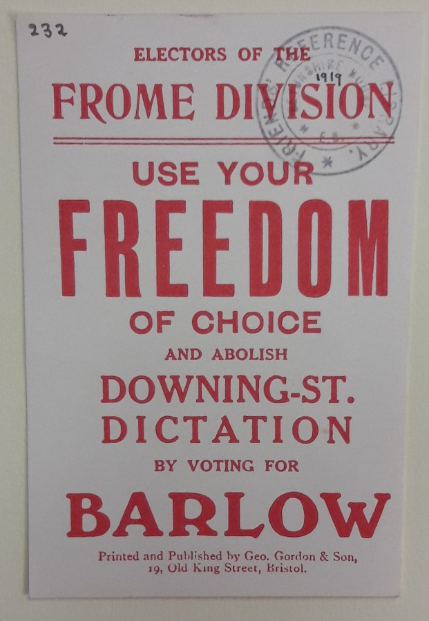 Election card, John E. Barlow, 1918 (Library ref: Box L 228/4)