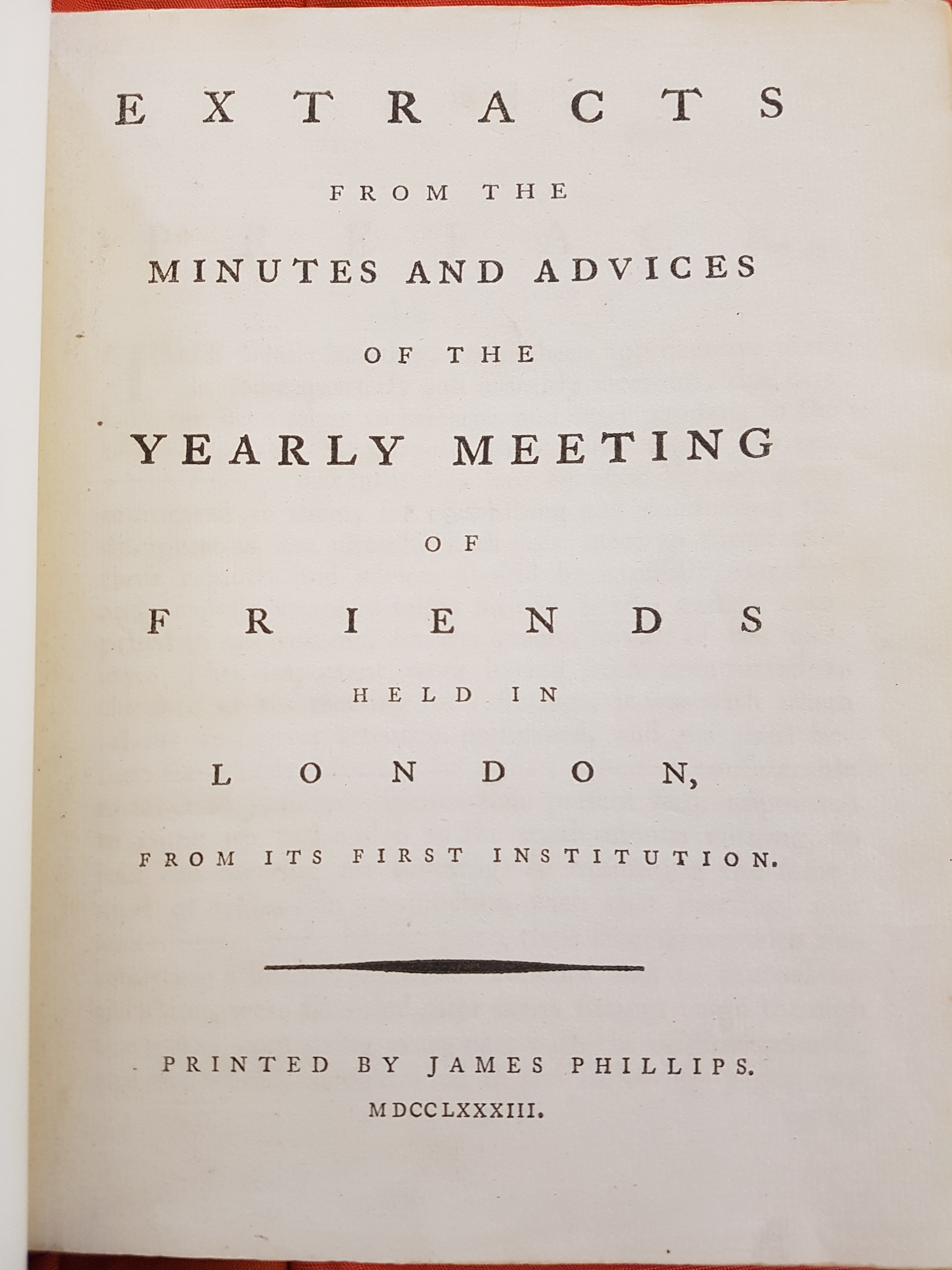 London Yearly Meeting’s first printed book of discipline – Extracts from the minutes and advices of the Yearly Meeting of Friends (London: James Philips, 1783)