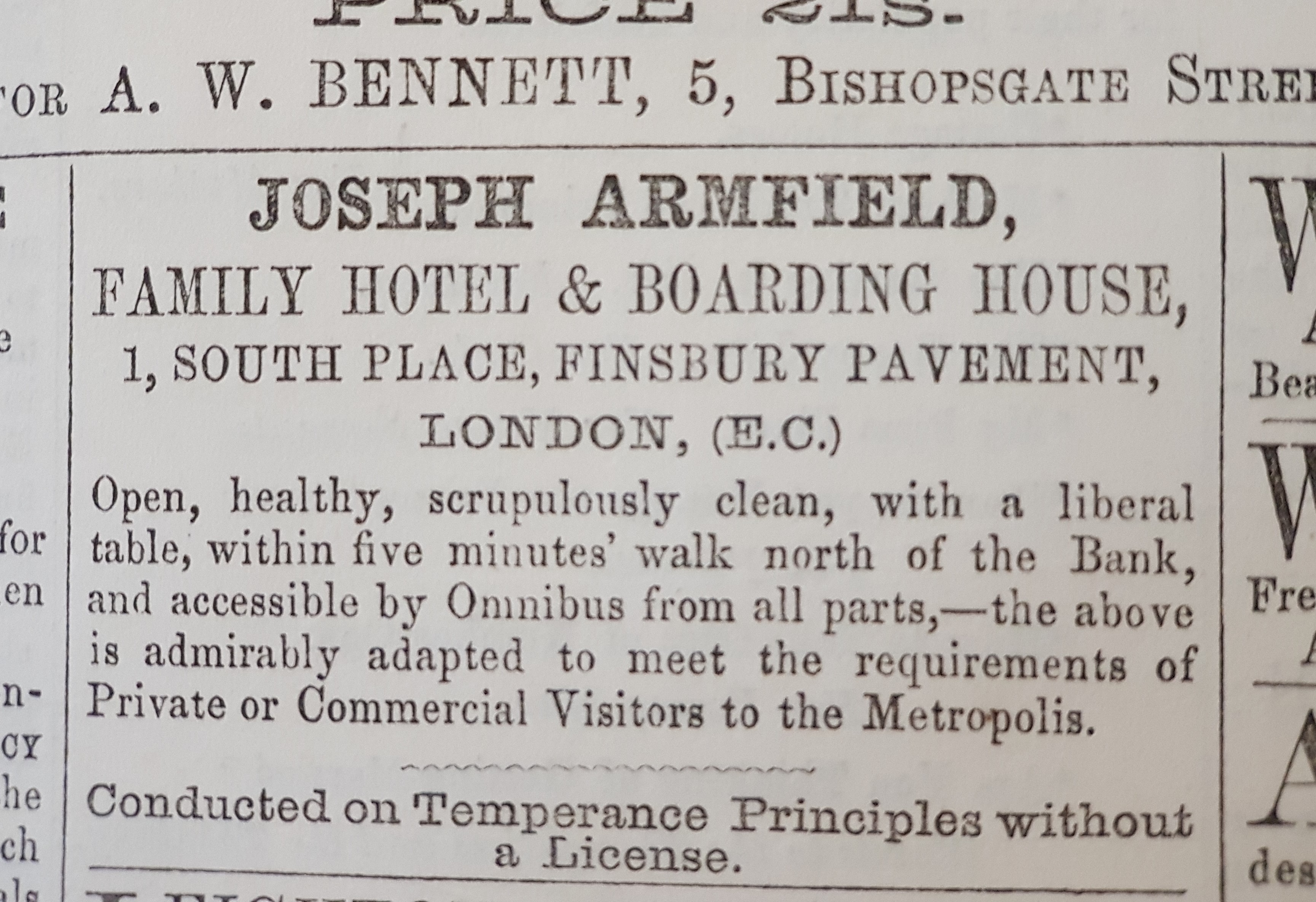 ← Open, healthy, scrupulously clean, with a liberal table: the Armfields and their temperance hotel