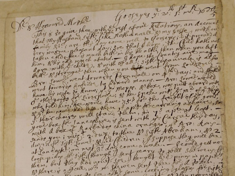 LSF MS Vol 364/27 – A letter from Sarah Meade to her mother Margaret Fell, explaining that John Rous has sent a box of “Barbados China oranges” to her and the others at Swarthmoor Hall