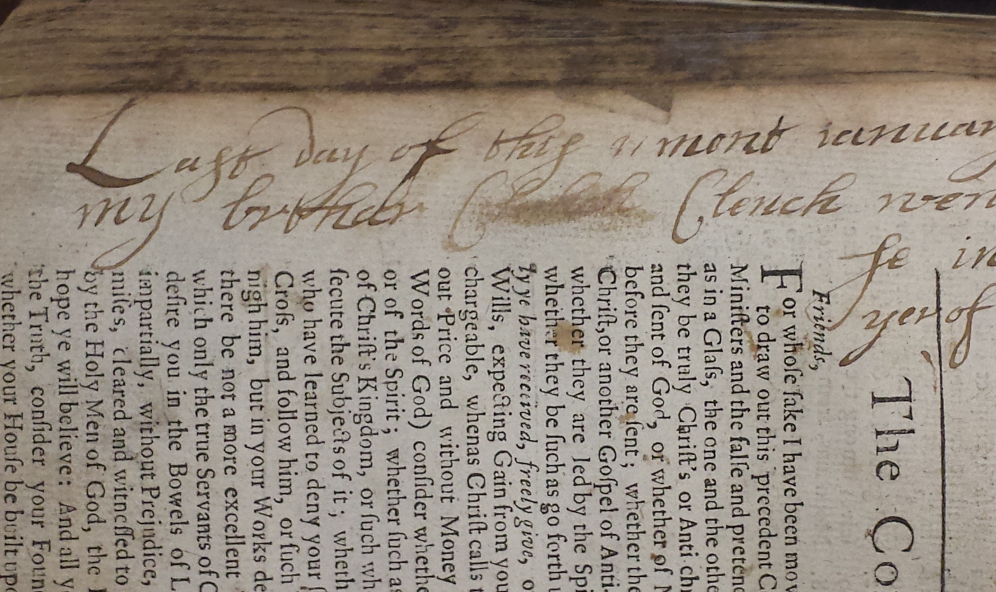 Marginal writing in Nicholas Knight, A comparison between the true and false ministers (1675) (Library reference: Hawkins Vol. 20/21a)