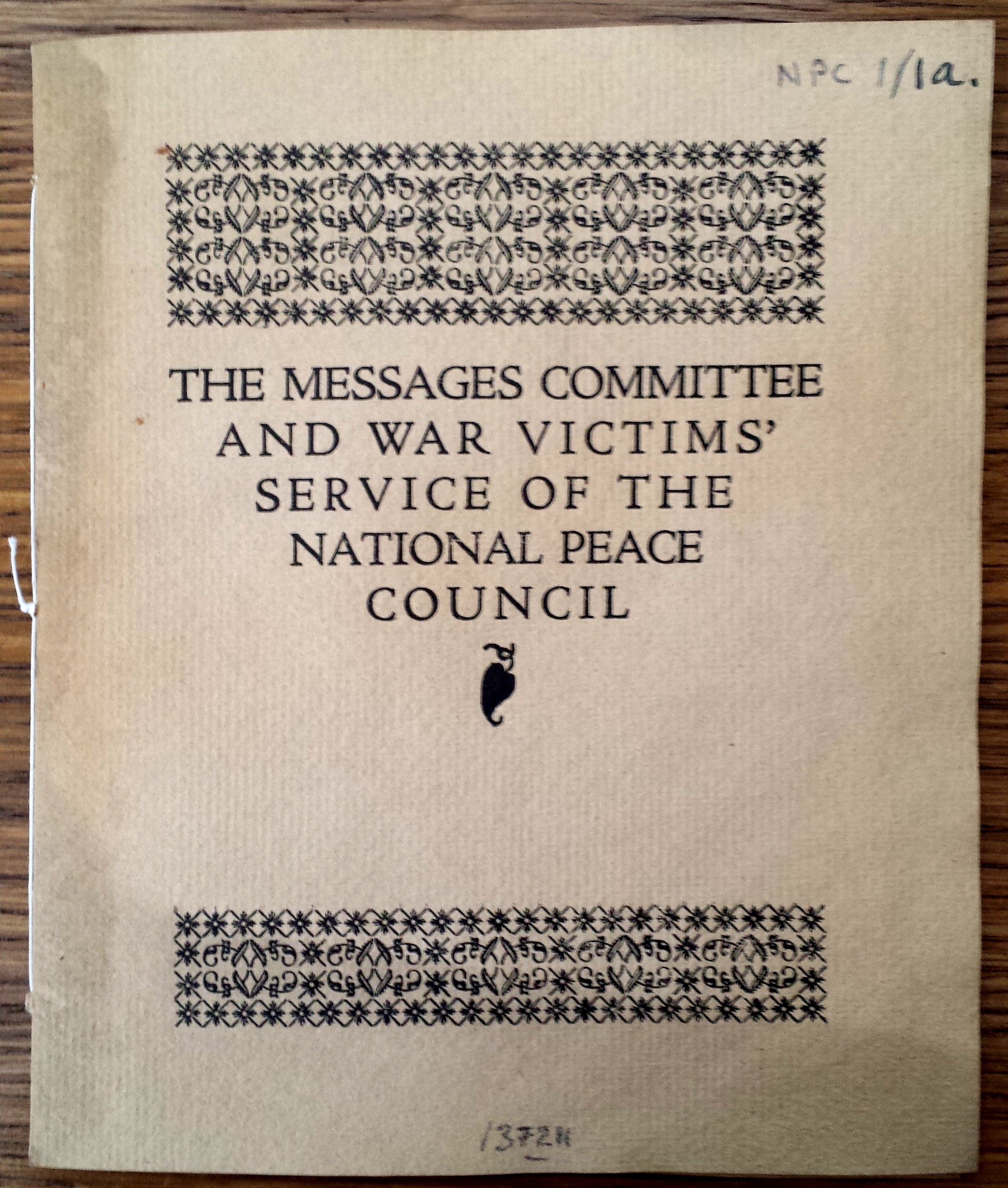 The Messages Committee and War Victims Service of the National Peace Council – cover