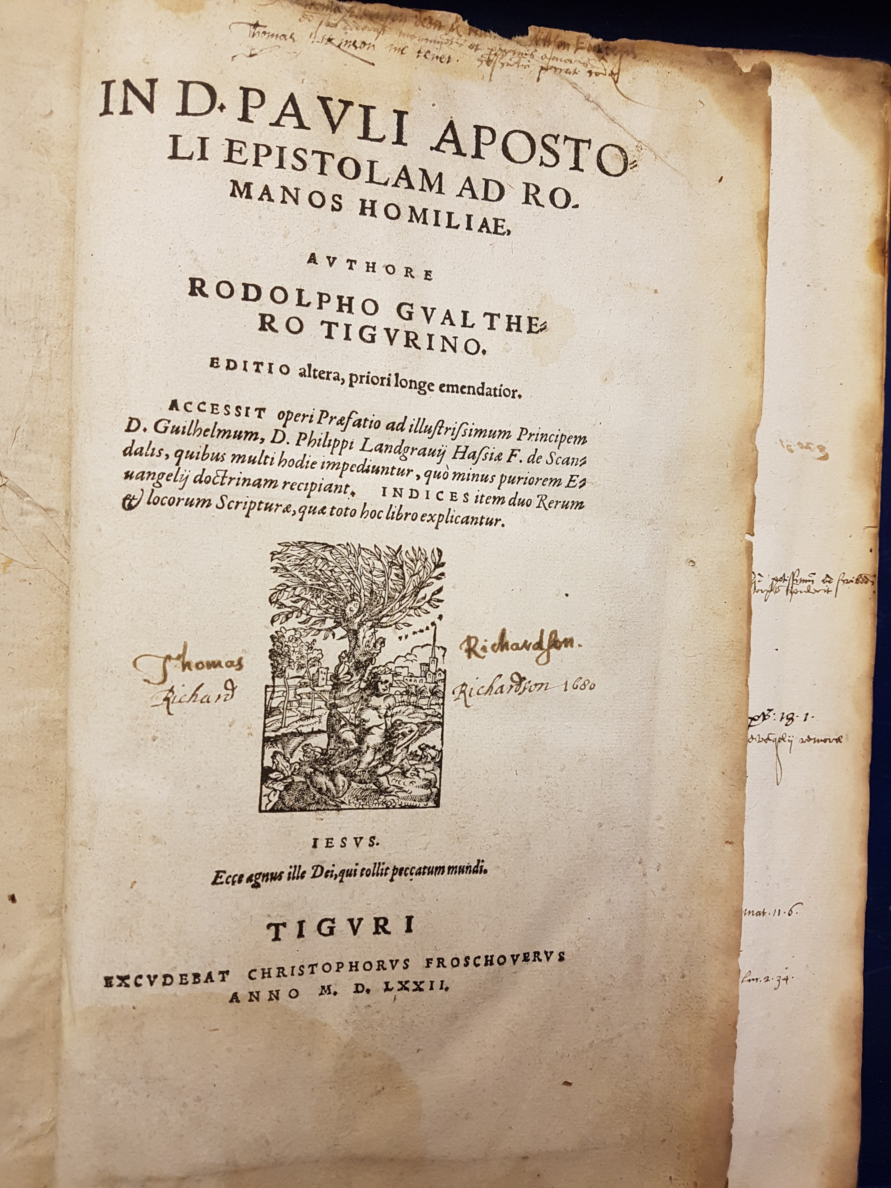 Richardson Collection 26. Gwalther, Rudolf, In D. Pavli Apostoli epistolam ad Romanos homiliae (1572)