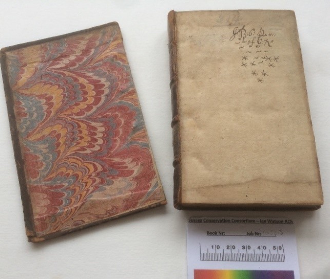 Some damage is obvious and typical of a binding style or method of manufacture, here Tract Vol 314, a leather tightback binding with a lot of heavy glue on the spine has for years had too much strain on the board hinges, inevitably they weaken and detach.