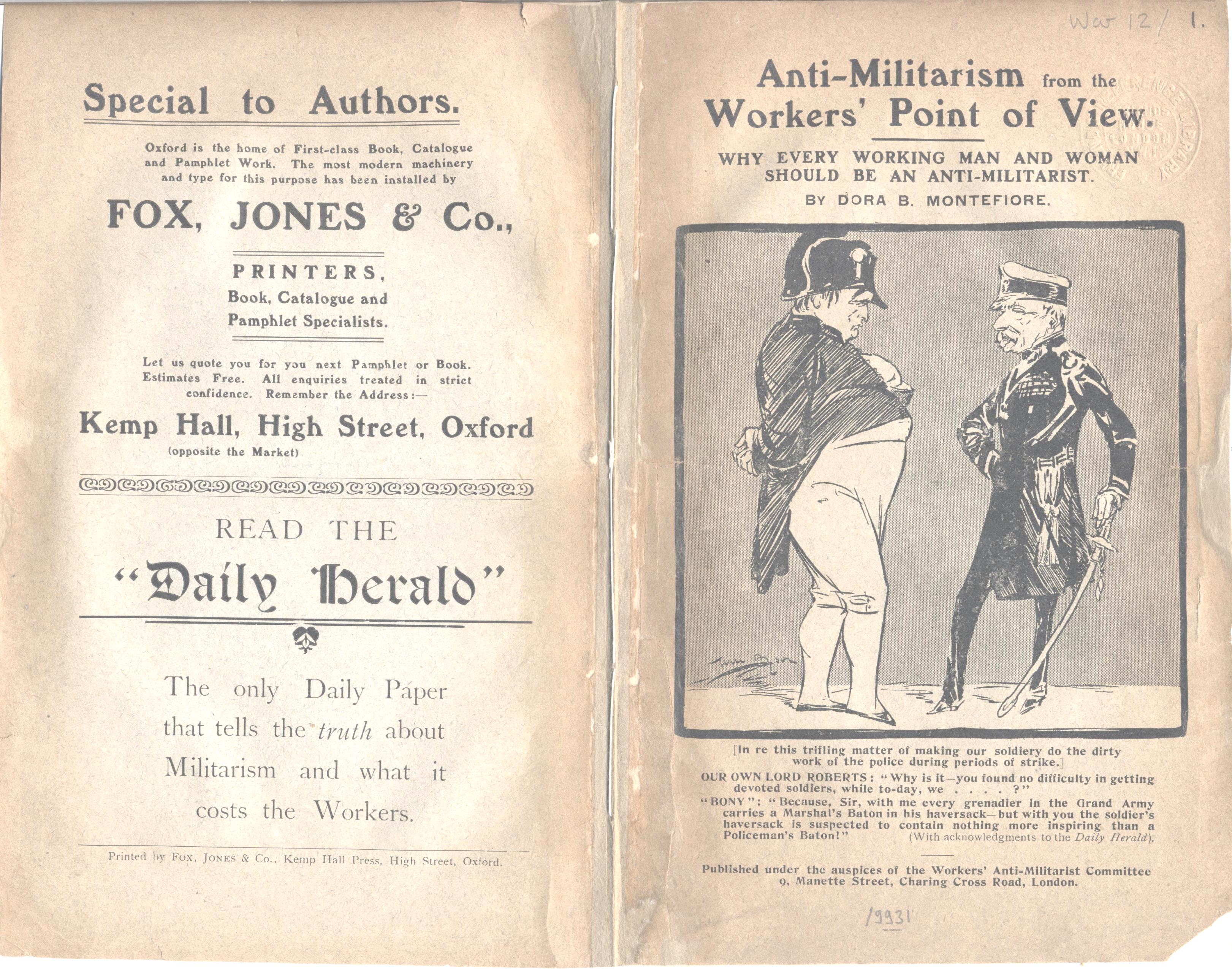 Montefiore, Dora B. Anti-Militarism from the workers’ point of view (London: Workers’ Anti-Militarist Committee, [1913?])